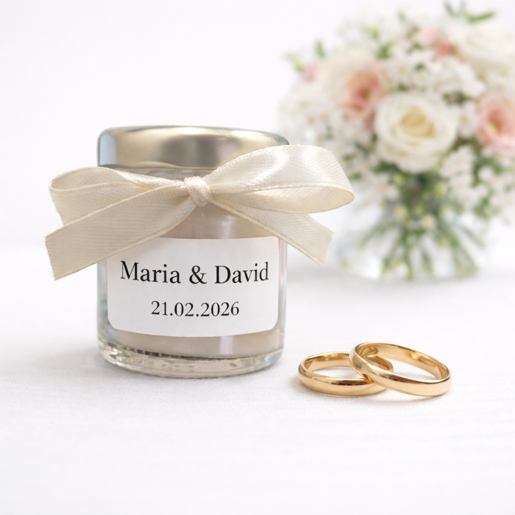 Nuestras velas para eventos pueden personalizarse con etiquetas con nombre y fecha, convirtiéndose en un detalle único y especial para los invitados de bodas, comuniones y celebraciones.